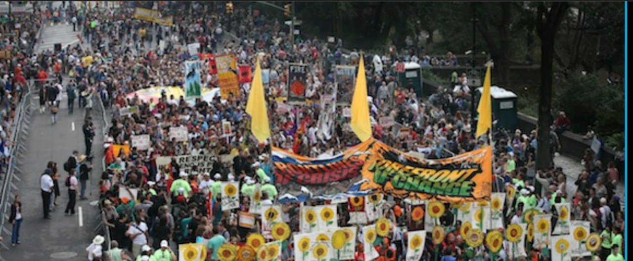The food riots of 2010-2011 he simply describes as “violence and unrest”, more signs of the end times. The fact that this “violence and unrest” led to massive political revolutions is not of interest to Emmott. Our unsustainable economy is already pushing people onto the streets, sparking revolutions and uprisings. Those who took part in the march in New York were largely people from communities effected by climate change and pollution. Tunisian Revolution, 2010-2011. Sparked largely by high food prices.These billions of people, these multitudes of humanity, who Emmott sees as the problem, are in fact the solution. Faced with these massive ecological and economic problems, people are not just going to knuckle under and starve. They’re going to seek for an alternative, a democratic, ecological socialist society. Unless Emmott’s children shoot them first.