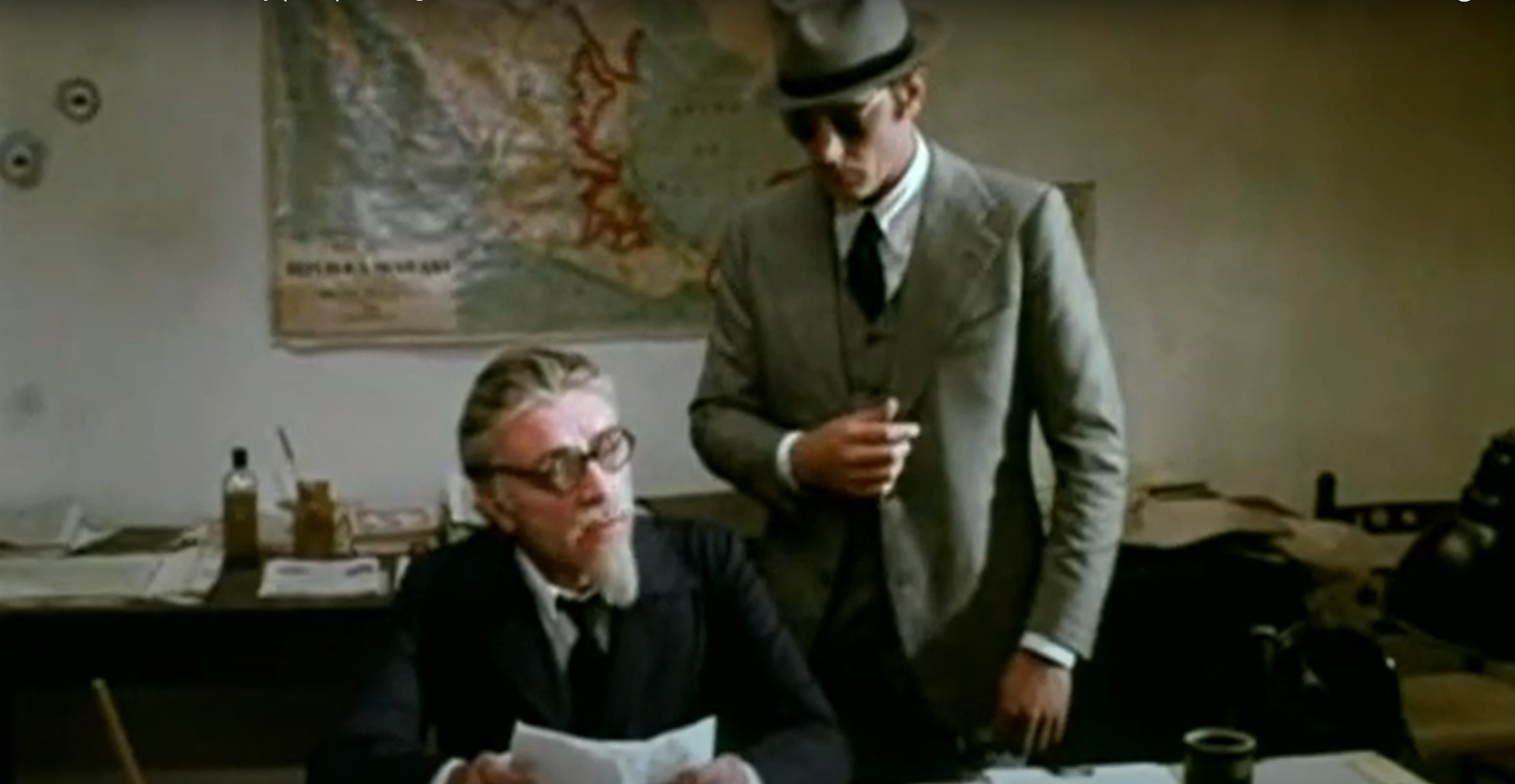 Trotsky with Ramón Mercader moments before the assassination. From The Assassination of Trotsky (1972, dir. Joseph Losey)