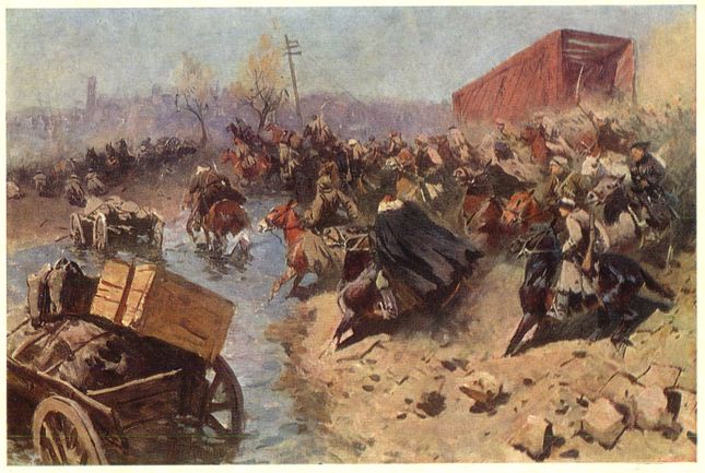 Beyond the Belaia spread to the horizon the limitless plain, the rich fruitful steppe: the lilac haze in the far distance enticed and excited – there were the home places so close to us, there was the goal, the Volga. And only the wall of the internatsional, which had impudently invaded our motherland, divided us from all that was closest and dearest.[xix]