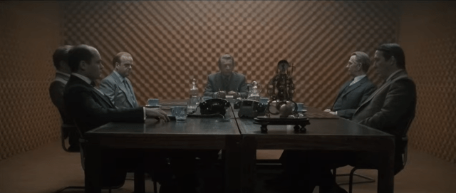 Again from the 2011 Alfredson movie. Esterhase, Haydon, Alleline, Control, Smiley and Bland in their soundproof room on the Fifth Floor. In The Honourable Schoolboy, most of this lot are in the doghouse. The main character is Jerry Westerby, played by Stephen Graham in the 2011 movie.