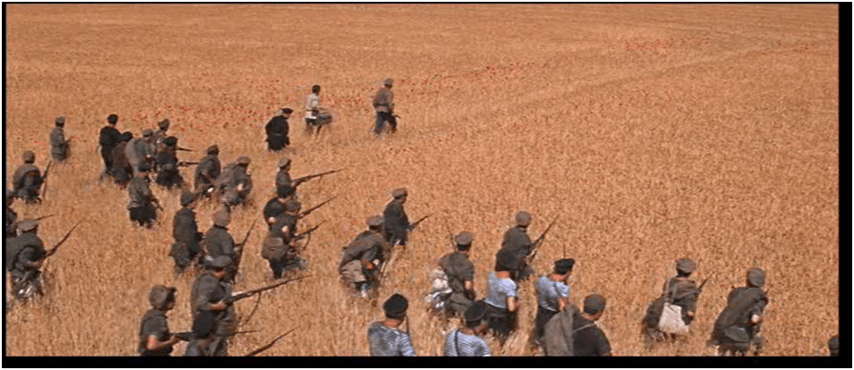 The movie presents the Revolution and its supporters generally in a negative light. To do so it too often it relies on exaggerations or inventions, or a collapsing of the timeline that goes beyond reasonable limits. This is a common failing in historical movies: the writer (who is working to industry deadlines and specifications) puts in what they assume was there and what the producers and audience expect to be there. So within weeks of the October Revolution we see a poet exiled for ‘individualism.’ A few weeks later we have villages burned by an army which wasn’t there as a punishment for aiding another army which also wasn’t there.