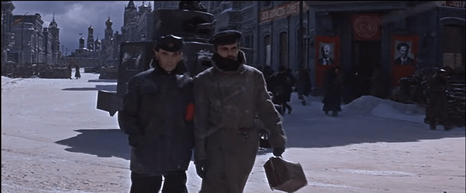 Kuril, as I remarked, has some good strong lines. The delegate tries to stop the ransacking of Yuri’s house. Antipov is the most obnoxious but also the most vulnerable. We pretty much view Yevgraf as a teddy bear by the end of the movie. Even Razin, whom we will meet later, has a line where he reveals he once has a wife and four children. What happened to them? The grumpy new janitor of Yuri’s Moscow house gets a good line about how the building had room for thirteen families.