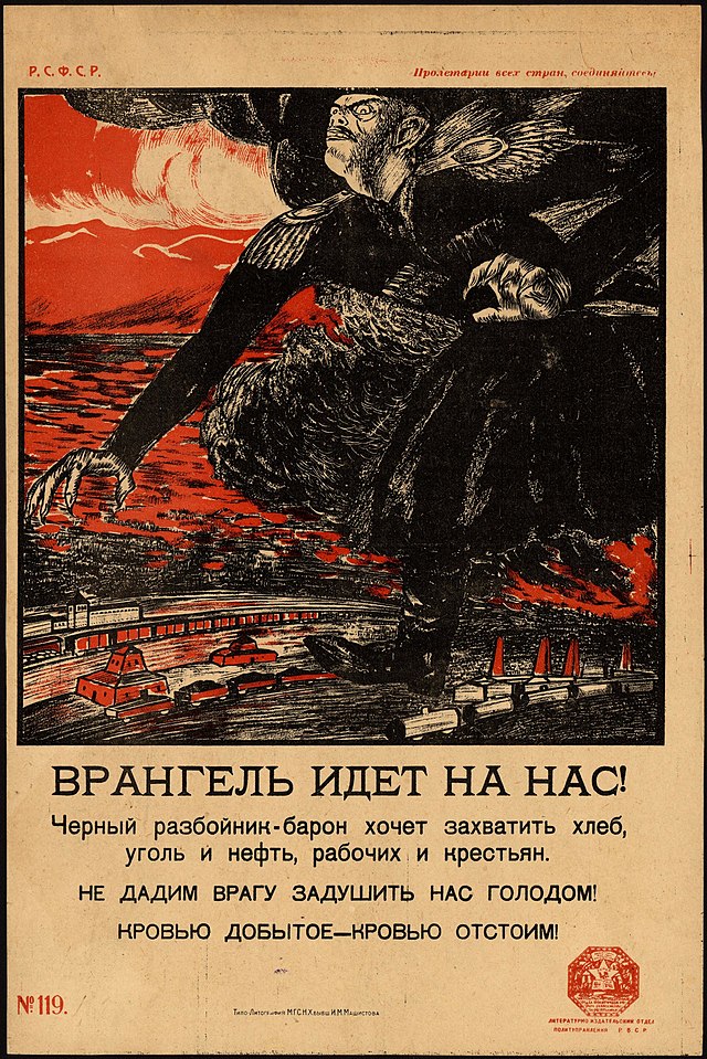 A Red poster from 1920. ‘Wrangel is coming to us […] What we earned with blood, we will defend with blood.’