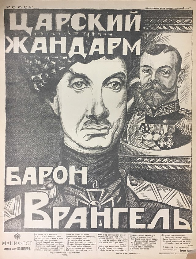 Wrangel was not a graduate of Bykhov prison-monastery or a survivor of the Kuban Ice March, not at all one of the original Kornilov club. But with his height and striking features, he looked the part more than any other major White leader; Soviet cartoons and posters got great mileage out of him.