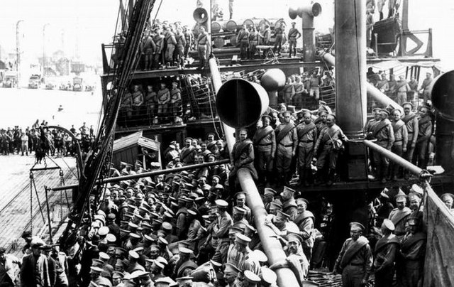 The 2nd Royal Scots Fusiliers acted as a rear guard, supported by a naval bombardment (one of the ships firing was the Waldeck-Rousseau, which had mutinied the year before). On March 27th the Red Army arrived, lobbing shells after the fleeing ships. By then, 34,000 had been evacuated (A disproportionate number were Volunteers, which suggests the Don Cossacks got shafted).