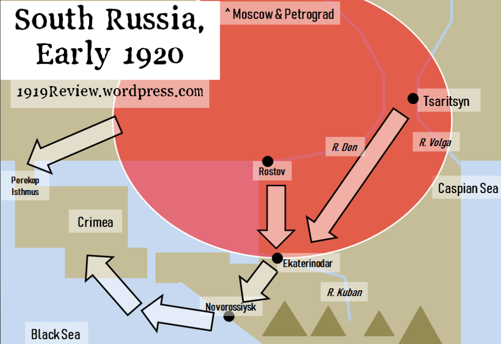 This post tells how the White Guards fled South Russia in a state of complete chaos, but survived and established a new base in Crimea. This is Series 4, part 3 of Revolution Under Siege, an account of the Russian Civil War.