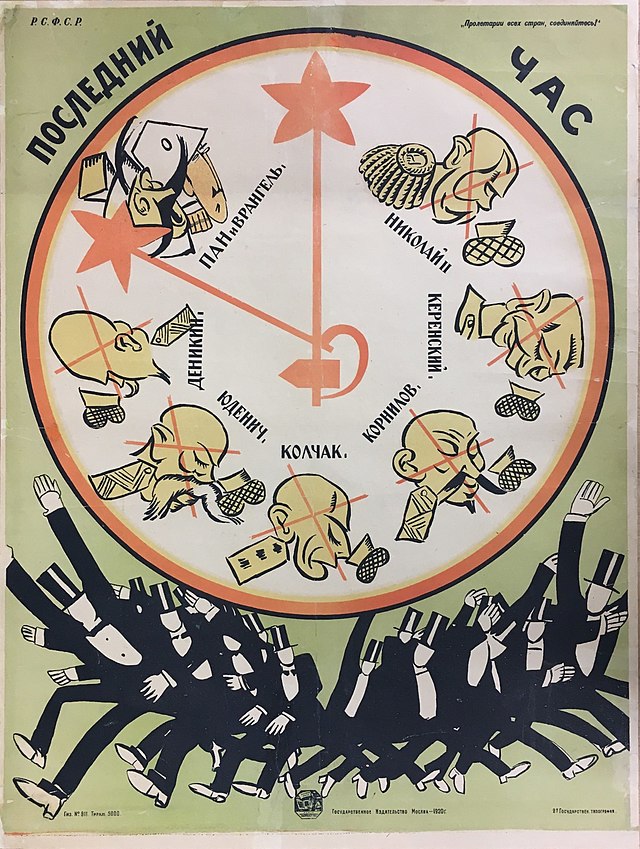The movie presents the Revolution and its supporters generally in a negative light. To do so it too often it relies on exaggerations or inventions, or a collapsing of the timeline that goes beyond reasonable limits. This is a common failing in historical movies: the writer (who is working to industry deadlines and specifications) puts in what they assume was there and what the producers and audience expect to be there. So within weeks of the October Revolution we see a poet exiled for ‘individualism.’ A few weeks later we have villages burned by an army which wasn’t there as a punishment for aiding another army which also wasn’t there.