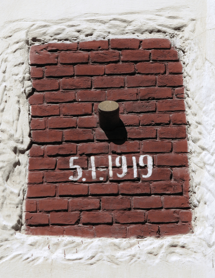 Apparently, this is a shell still lodged in a wall in Lviv, left over from the 1918-9 Polish-Ukrainian war